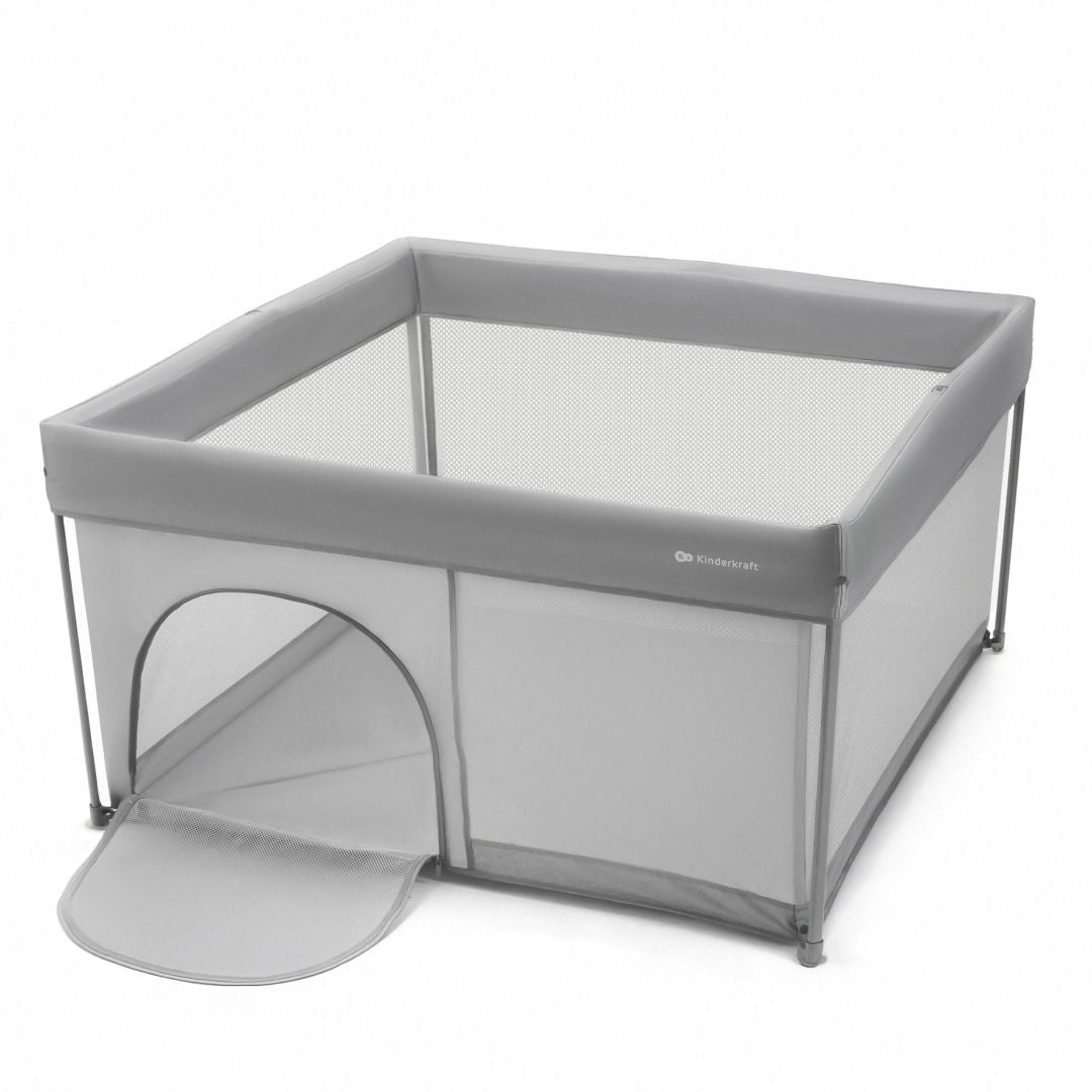 Su estructura resistente de acero y las patas estabilizadoras proporcionan una base firme y segura, mientras que los laterales de material transpirable aseguran una correcta circulación del aire y permiten una supervisión constante. El suelo acolchado aporta mayor comodidad para las horas de juego.