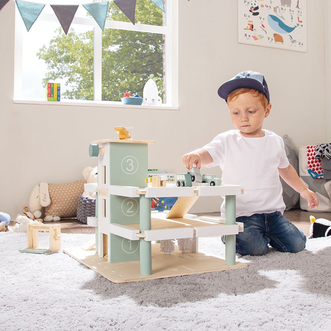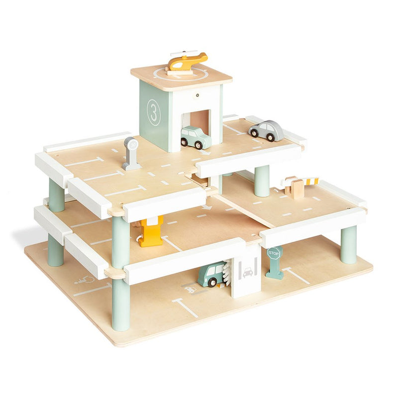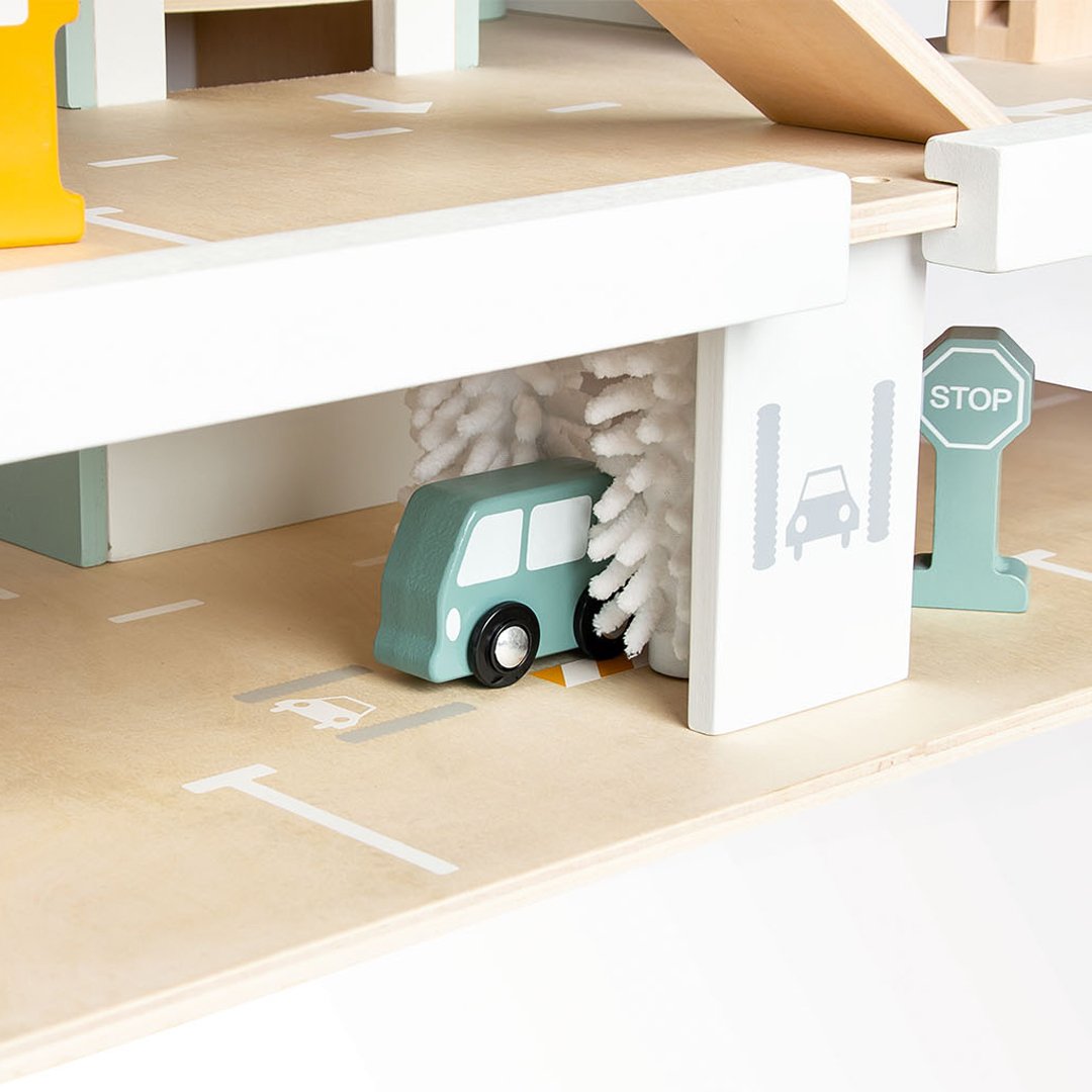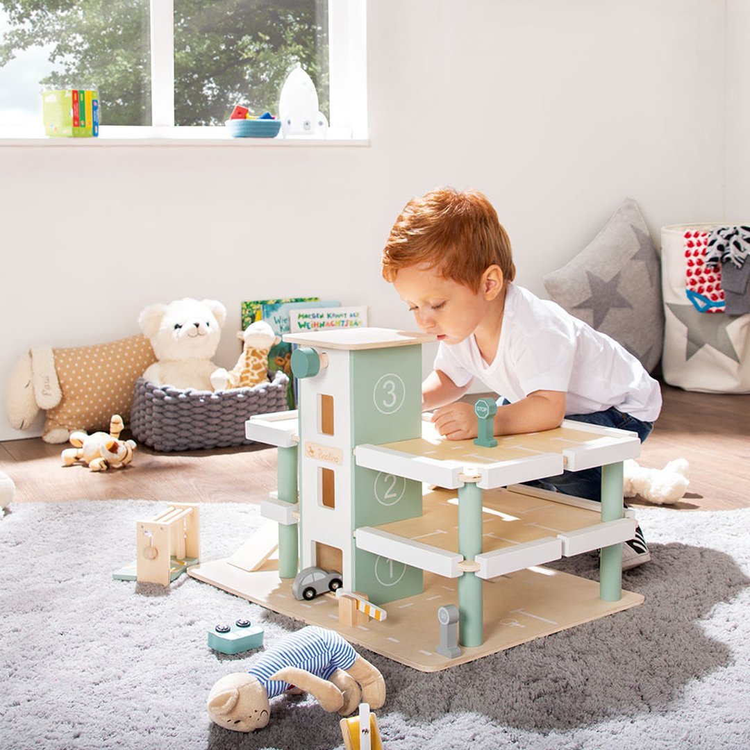 Kurt es un juguete de madera diseñado para estimular su creatividad y habilidades motoras. Los pequeños fanáticos de los autos podrán vivir grandes aventuras en los 3 pisos del estacionamiento, junto con decorar y recorrer cada nivel con accesorios incluidos. Uso desde: 3 años.