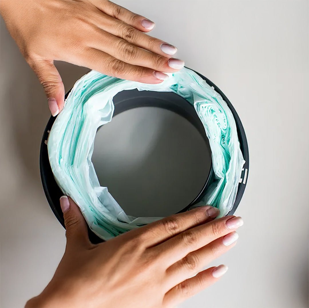 Cada pañal se envuelve y sella con un simple giro, manteniendo los olores y gérmenes completamente contenidos y usando el material de forma eficiente.