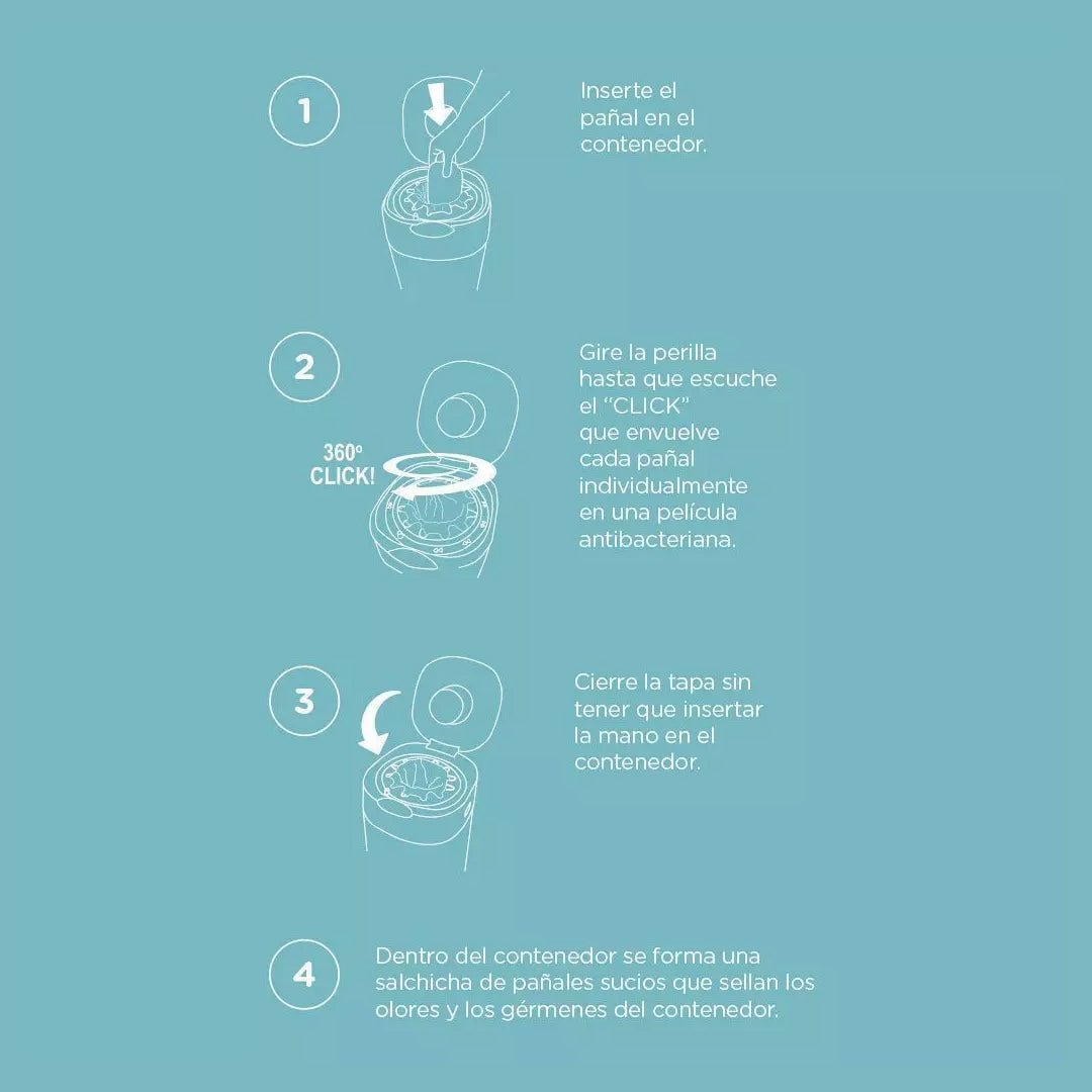 Compatible con recambios Twist & Click, que también funcionan en el modelo anterior Sangenic TEC (los repuestos antiguos no son compatibles con el sistema Twist & Click).
