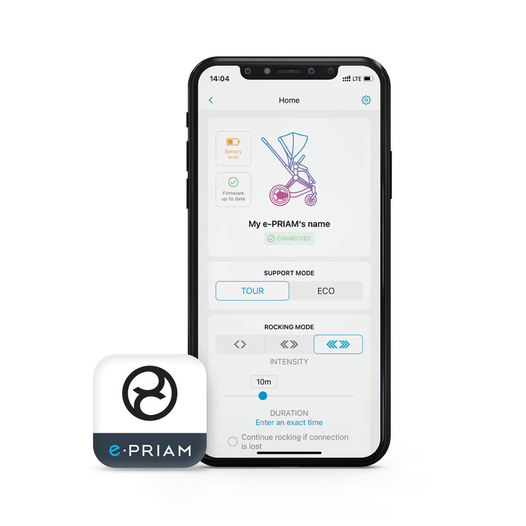 El coche e-PRIAM cuenta con una aplicación gratuita de CYBEX que te permite activar la función de balanceo, controlar el nivel de asistencia de los motores eléctricos y comprobar la batería y el firmware.