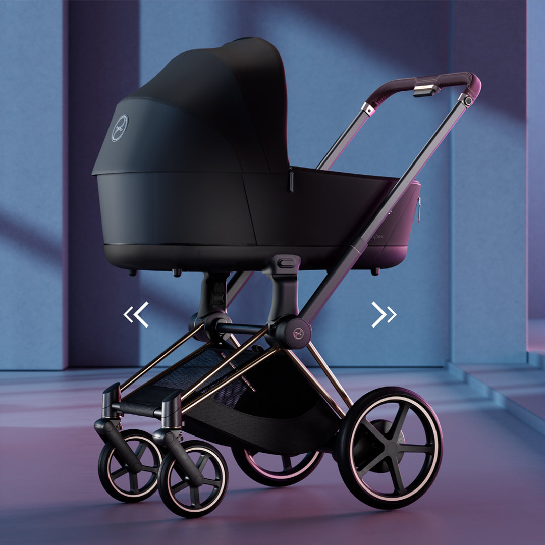 Personaliza el Priam a tu gusto con el moisés Priam Lux Carry Cot, una silla nido de CYBEX o el pack de asiento Priam. Todos los productos para personalizarlo se venden por separado.