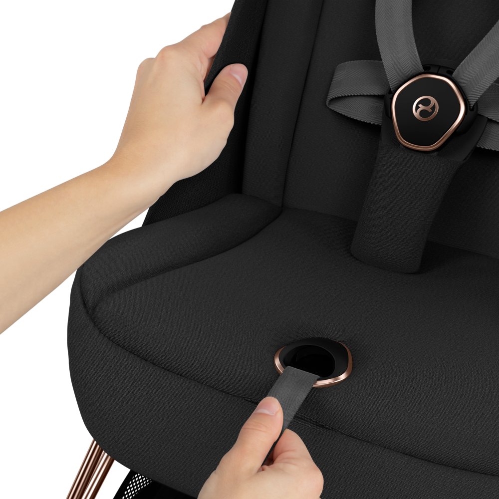 Es apto desde el nacimiento gracias a la reclinación ergonómica, el reposapiés ajustable y el cómodo arnés con "sistema one pull" ajustable con una mano. Puede transformarse en Trave System con sillas nido CYBEX y adaptadores, Y está preparado para pasar del coche al auto con facilidad.