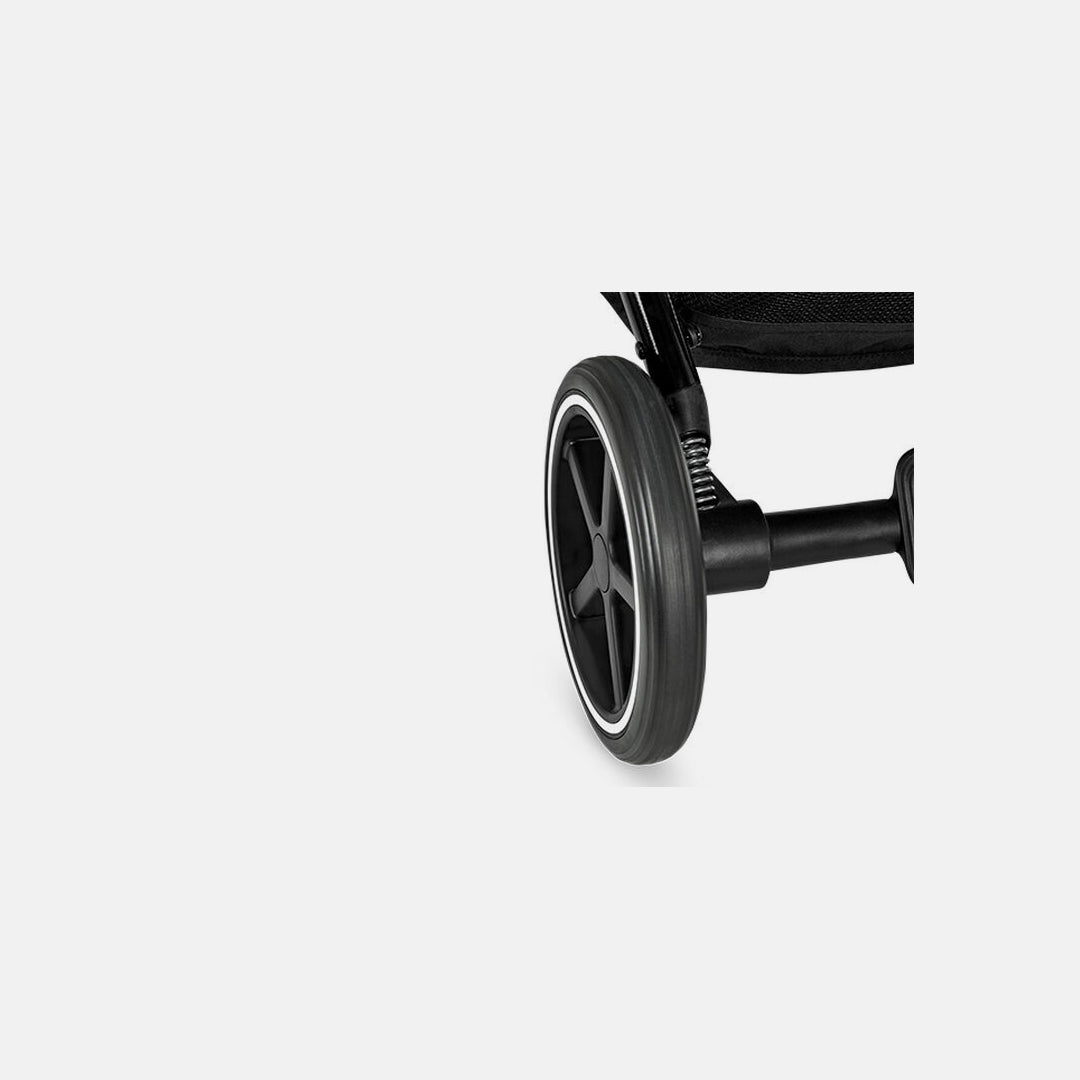 La Eezy S+2 se maneja muy fácilmente incluso sobre terrenos accidentados y permite que tu bebé siga durmiendo como si nada gracias a las ruedas todoterreno de gran tamaño, la suspensión integral y las ruedas giratorias con bloqueo frontal que garantizan desplazamientos suaves.