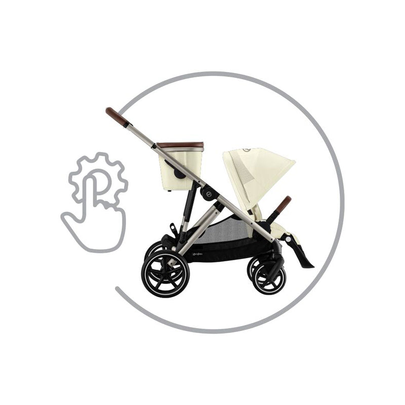 Gazelle S es un coche versátil, diseñado para familias en crecimiento. En su versión simple incluye asiento y canasto extraíble de compras que soporta hasta 10kg. Además, puedes usarlo como travel System con sillas de auto nido CYBEX. Pero eso no es todo, ¡Configúralo como coche doble! Existen más de 20 combinaciones, donde podrás agregar un asiento (no necesita adaptadores), silla nido extra o moisés.