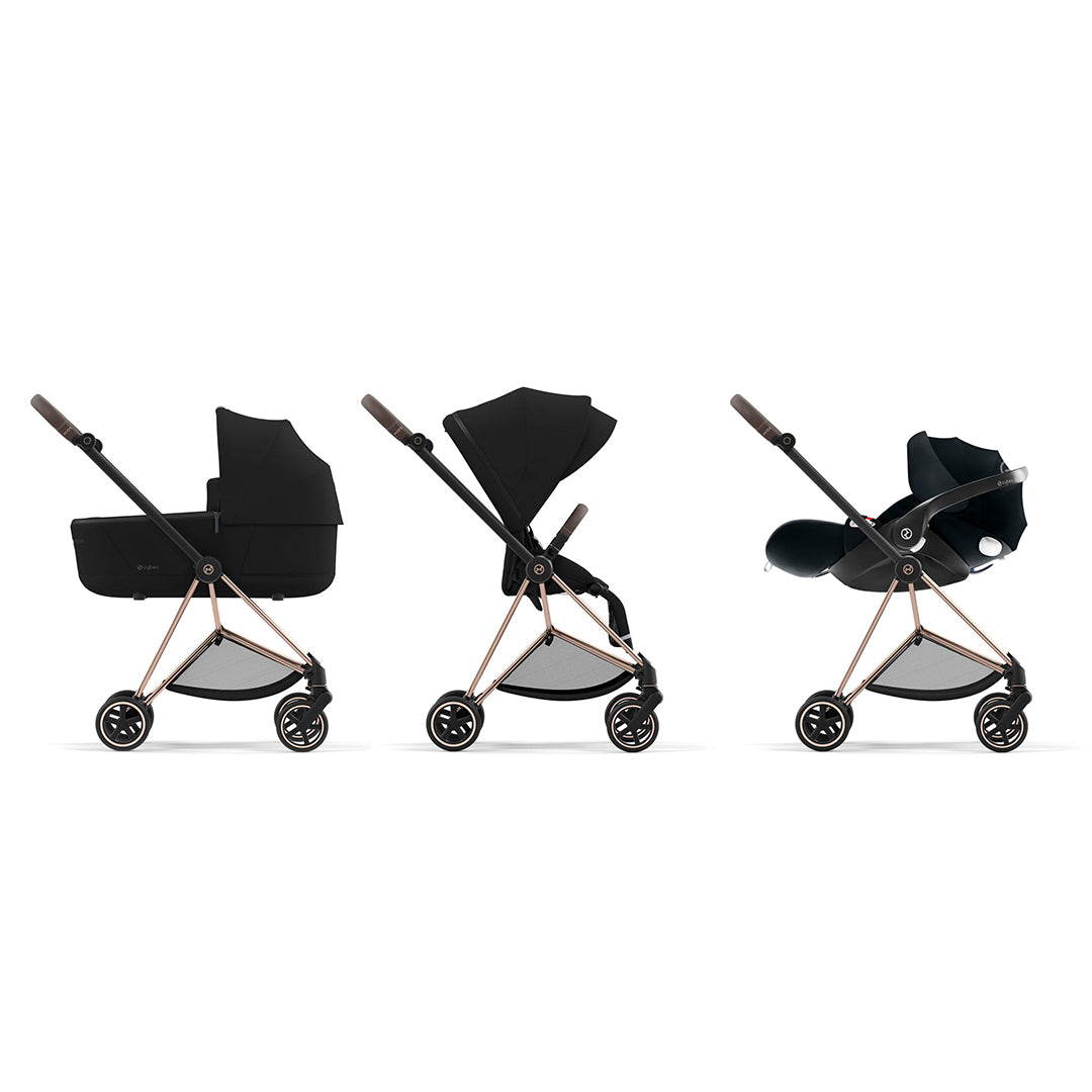 Elige un moisés para viajar con el bebé o un asiento para niños mayores. Compatible con sillas de auto nido cybex, lo que te permite pasar de la calle a la vereda sin problemas.