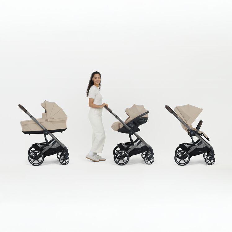 Un coche, tres modalidades de transporte. Incorpora una silla nido CYBEX o moisés Cot S Lux (se venden por separado) o con el asiento para adaptar el coche a cada trayecto.