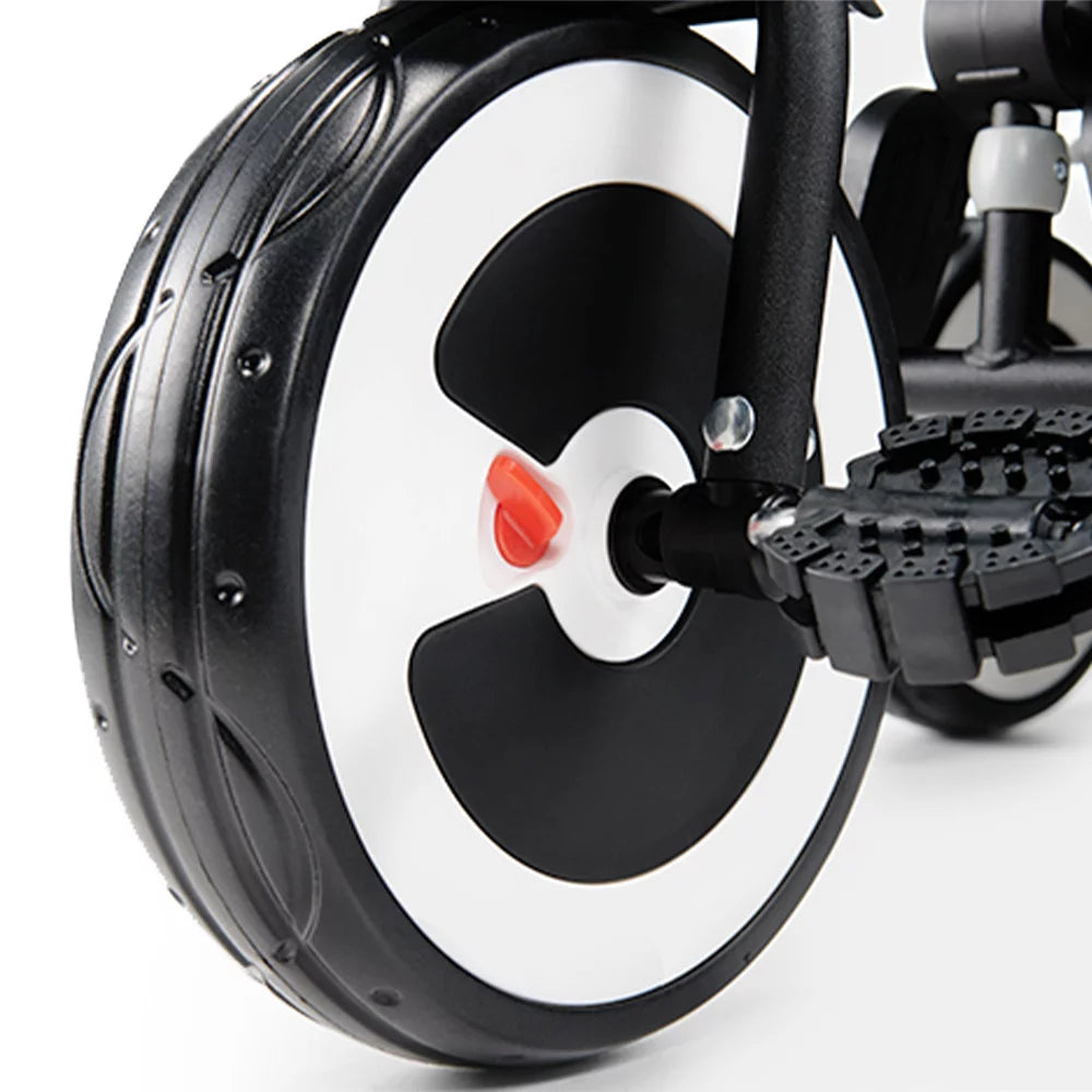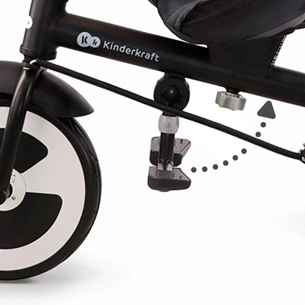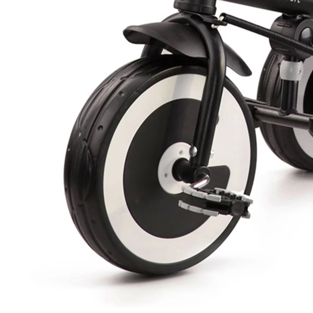 Si tu hijo aún no puede alcanzar los pedales, basta con desplegar los reposapiés situados cerca del asiento. Podrás desplegarlos y plegarlos en cualquier momento: incluso durante el paseo, una vez que el pequeño se canse de pedalear.