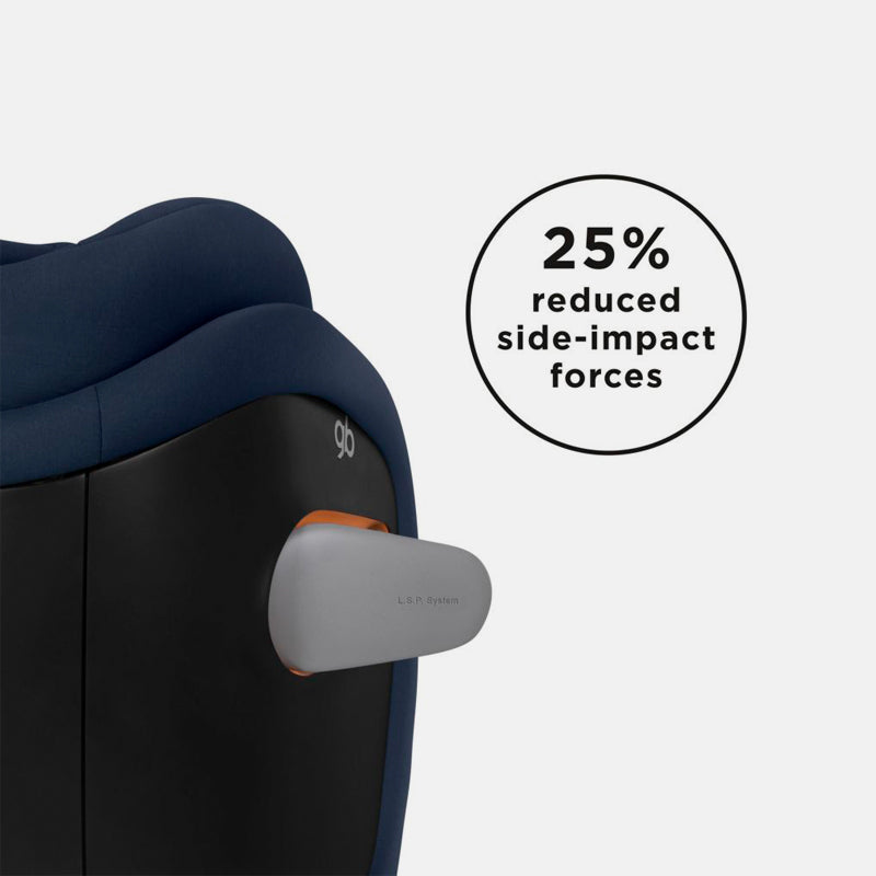 El Sistema L.S.P. es un elemento esencial de seguridad de la Everna-Fix de GB. Activado en el lado de la puerta, en caso de colisión lateral reduce las fuerzas de impacto en un 25% en comparación con la misma silla sin L.S.P.