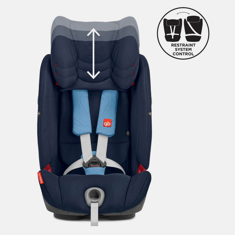 Se asegura de que utilices la restricción correcta para el tamaño de tu hijo. A medida que aumente su peso y se ajuste el reposacabezas a la altura del pequeño, el sistema de control de restricción se asegurará de que cambies el arnés de 5 puntos por el cinturón de seguridad de 3 puntos del vehículo.