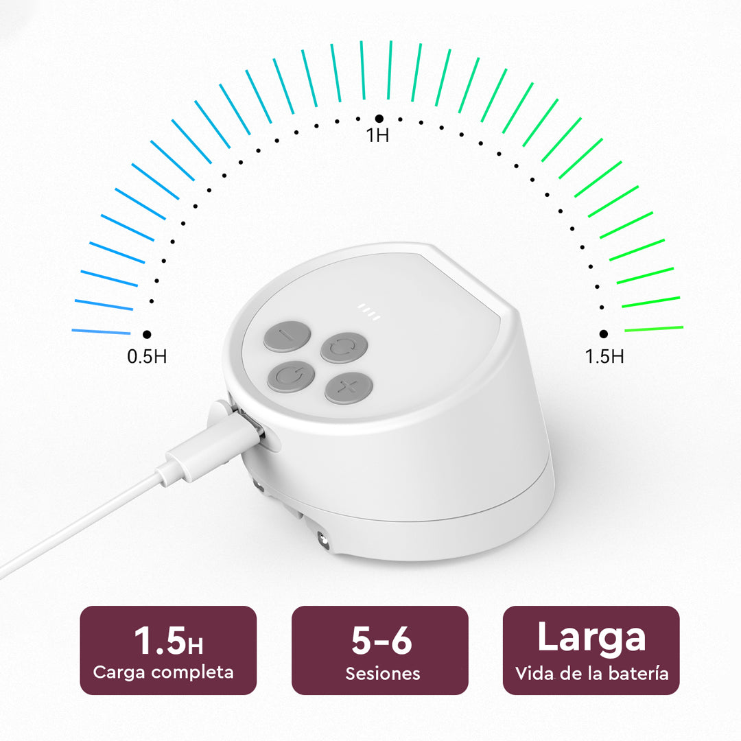 - Tiempos de uso: 7-8 sesiones de bombeo con una carga (240 minutos de uso).