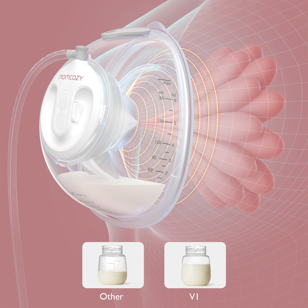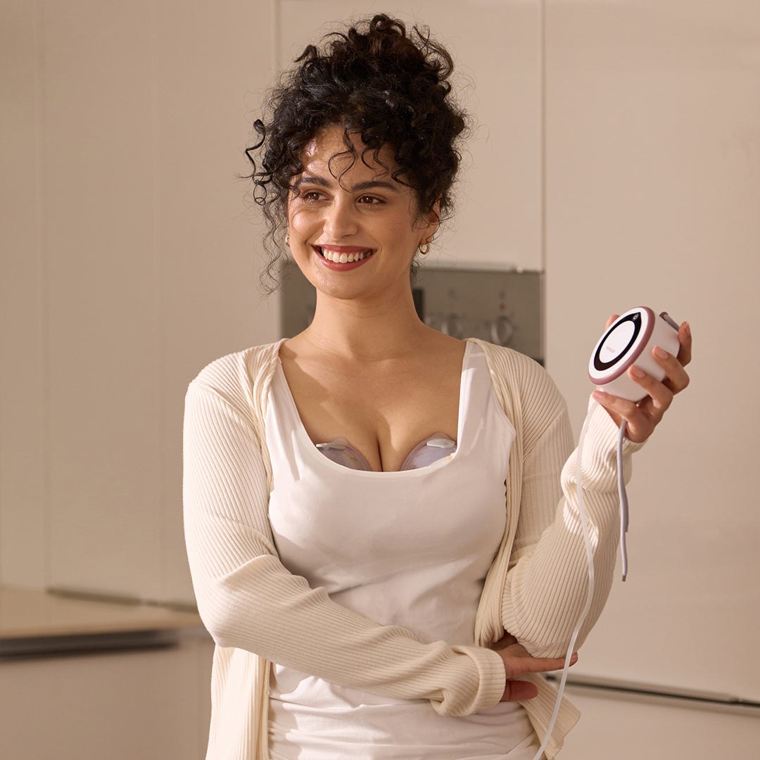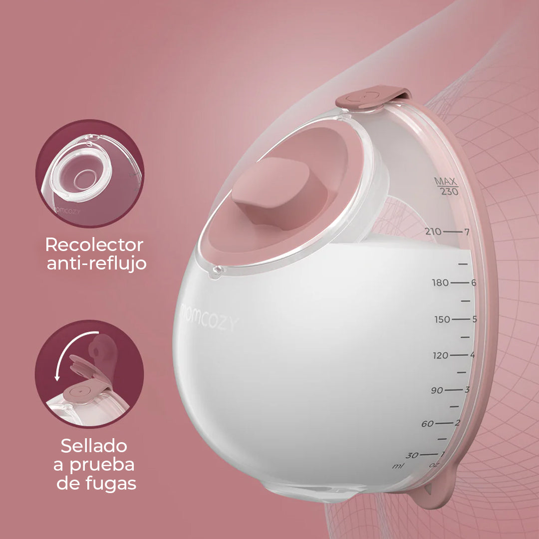 Solo 3 piezas en contacto con la leche lo que facilita la limpienza. Batería 2300 mAh ≈ 9 sesiones por carga; puerto USB-C para carga rápida.