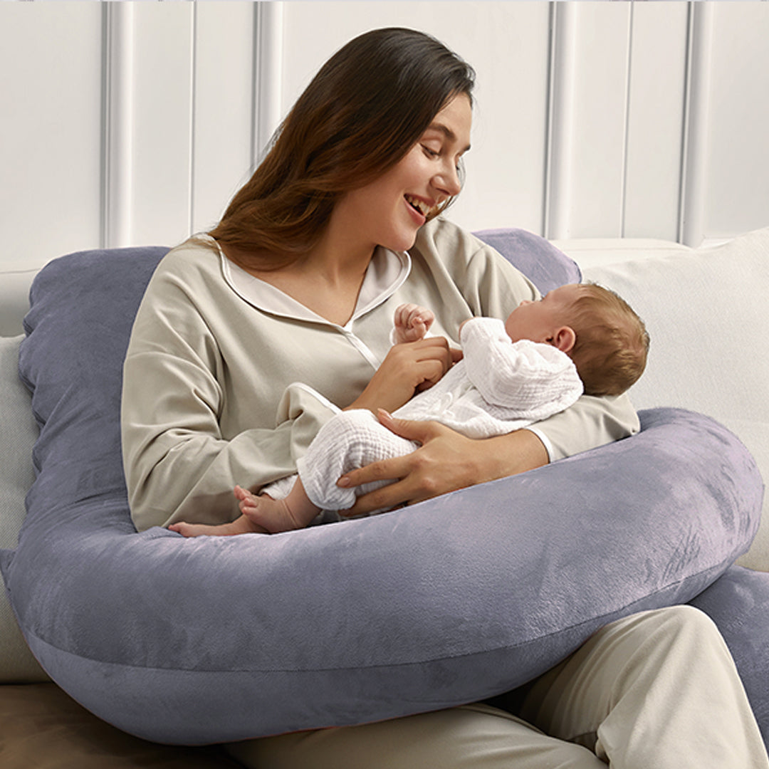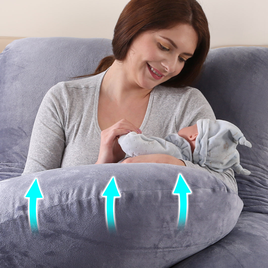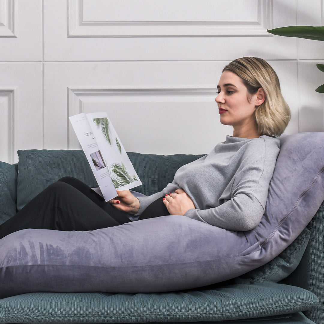 La almohada de embarazo Momcozy en forma de U es bastante flexible para que puedas cambiarla en varias posiciones, como amamantar, mirar televisión o leer, o cambiar los lugares de tu cuerpo que deseas apoyar.