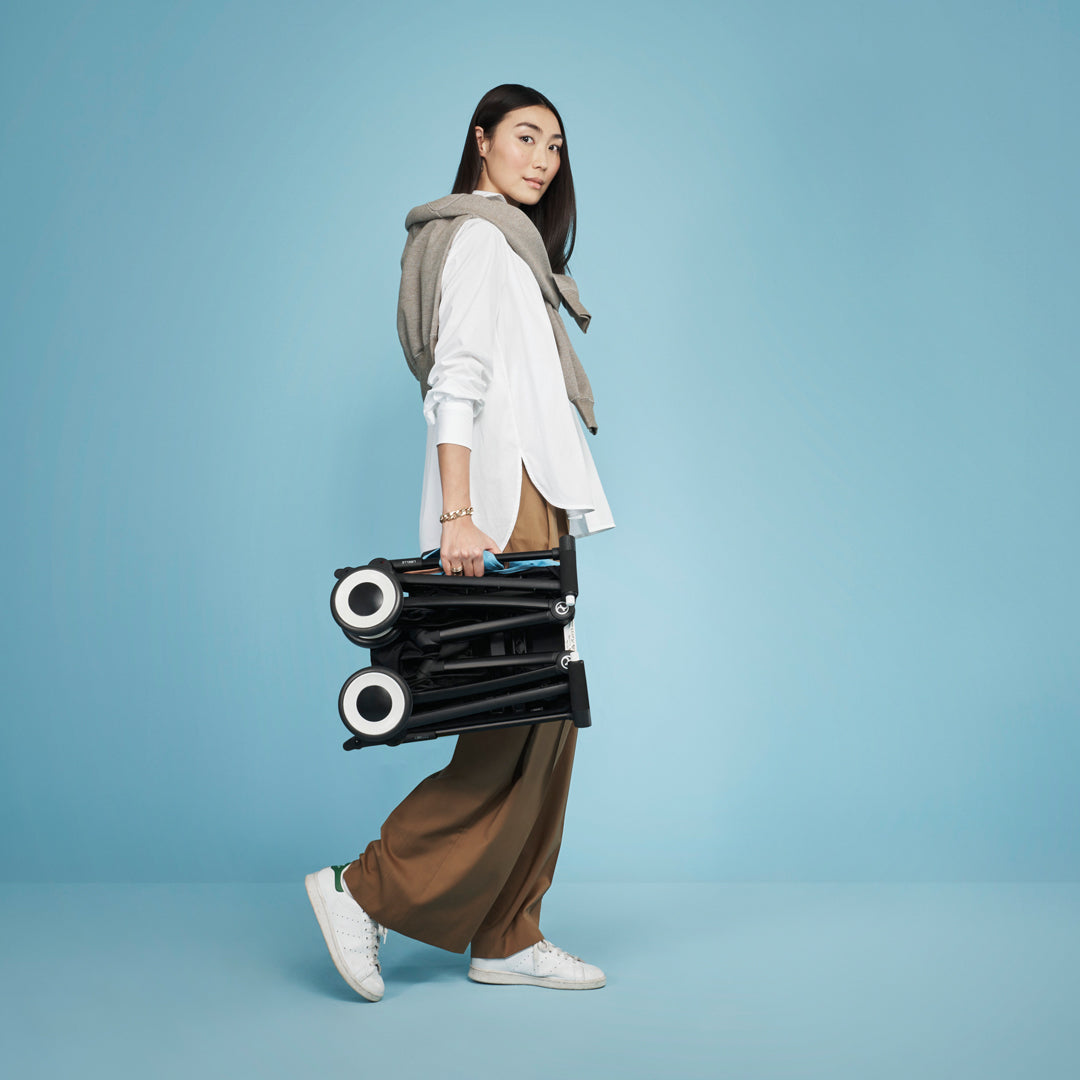 Pliega y despliega la silla de paseo en cuestión de segundos y disfruta de su diseño ultracompacto, que cabe sin problemas en el maletero del automóvil o en los compartimentos de equipajes.
