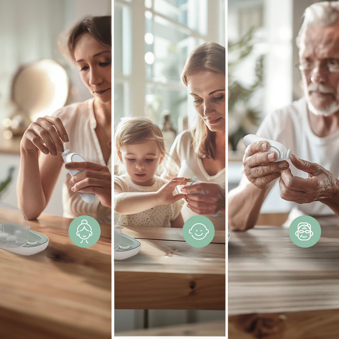 ¡Mantener las uñas de tu bebé perfectas nunca fue tan fácil ni tan seguro! Gracias a su tecnología de bajo ruido, con tan solo 35dB en su modo más silencioso, podrás cuidar sus uñas mientras duerme, sin preocuparte por despertarlo. Su diseño suave y delicado hace que cada momento de cuidado sea un acto de amor, sin causar molestias ni estrés.