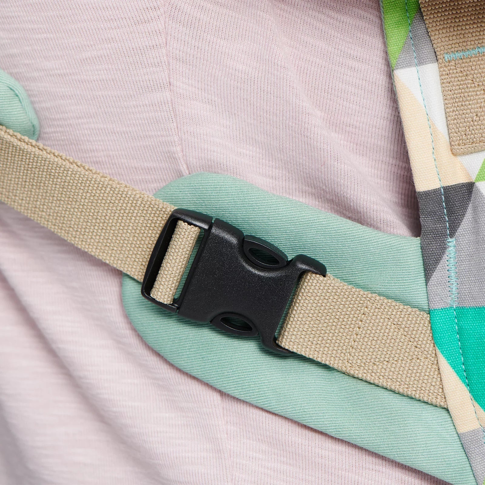Las hebillas de la mochila portabebés tienen fundas blandas que protegen a los padres de la presión excesiva.