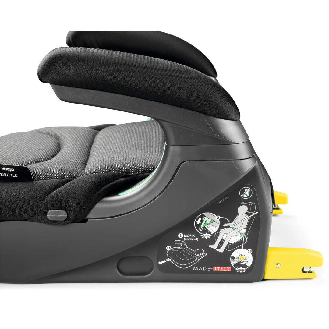 El alzador para auto Viaggio 2-3 Shuttle es ligera y sencilla de instalar, está compuesta solo por la base, por eso es apropiada para los niños más grandes, con una contextura física que ya se adapta al uso de los cinturones de seguridad del vehículo.