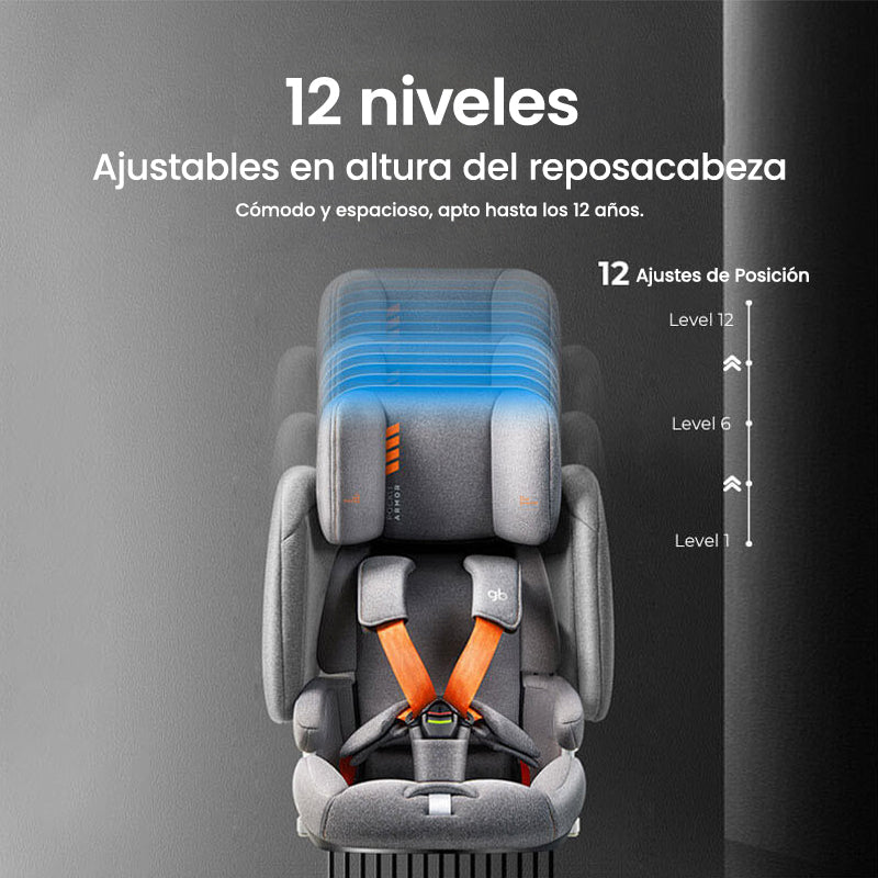Diseñada para bebés de 15 meses hasta niños de 12 años. Úsala con arnés interno desde los 15 meses (76cm) hasta los 4 años (105cm) y como butaca con el cinturón de seguridad de tres puntas del vehículo, desde los 3 años (100cm) hasta los 12 años (150cm).
