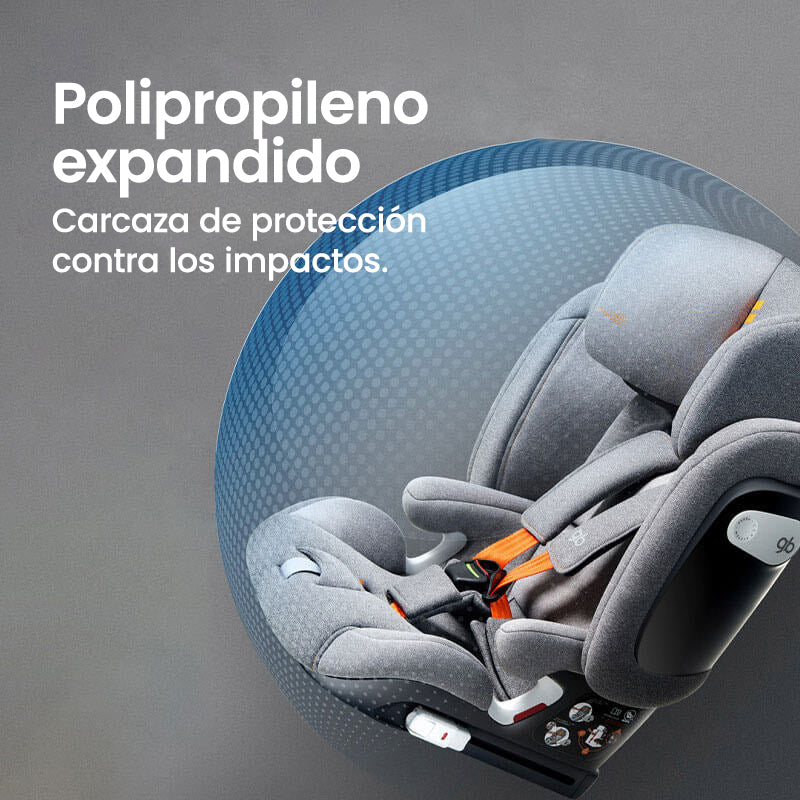 · Otras características: tecnología GEBES en su estructura, que absorbe las energías de impacto; tela DuPort SORONA ultra respirable, estructura que facilita la ventilación; Memory Foam en el apoyacabezas, que aborve energías de impacto.