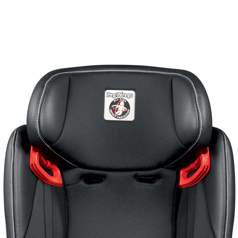 Sistema de protección frente a impactos laterales estudiado para reducir las fuerzas que actúan sobre el cuello y sobre la cabeza del niño en caso de impacto lateral. Máxima seguridad en cada etapa de crecimiento del niño gracias al reposacabezas y a los cinturones regulables en altura, simultáneamente.