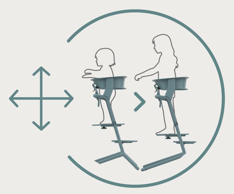 A medida que tu hijo crece, tu Torre de Aprendizaje Lemo también puede hacerlo. Dales una posición fácil para subirse y el espacio para las piernas que necesitan ajustando el asiento y el reposapiés de tu Lemo Chair. El ajuste se realiza sin esfuerzo con una sola mano y sin necesidad de herramientas.