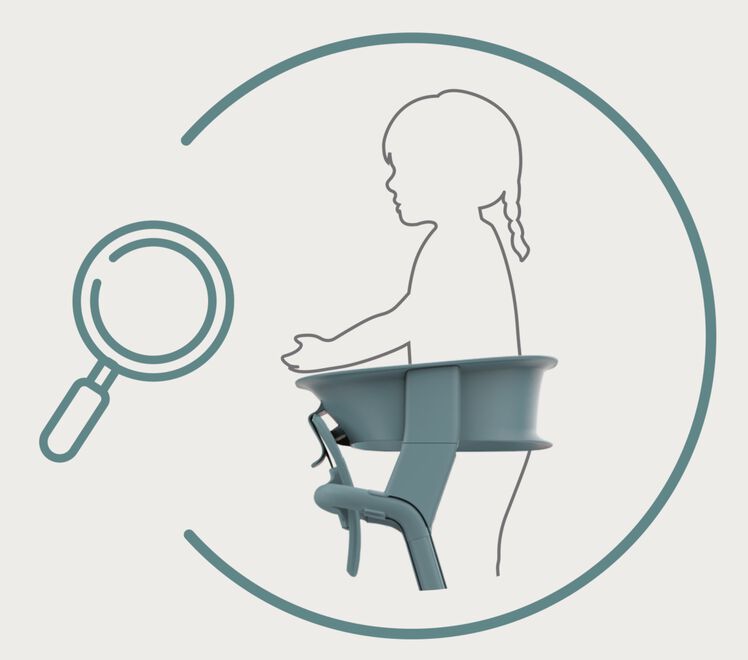 El ingenioso diseño transfiere el peso a la parte inferior de la Lemo Chair, asegurando la estabilidad. Más arriba, un anillo protector sostiene la espalda del niño. Las alfombrillas de silicona antideslizantes del asiento y el reposapiés añaden un agarre adicional cuando el niño está de pie o trepando.