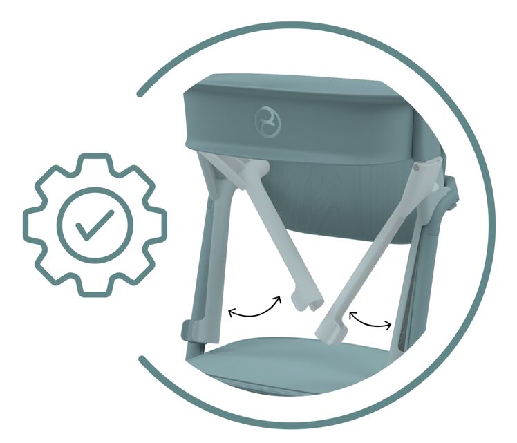 El espacio es siempre un bien escaso. El Set de Torre de Aprendizaje Lemo es fácil de guardar con un rápido sistema de plegado con una mano. Como se engancha a la Lemo Chair existente, no necesitarás una torre de aprendizaje aparte, y así obtendrás un preciado espacio libre.