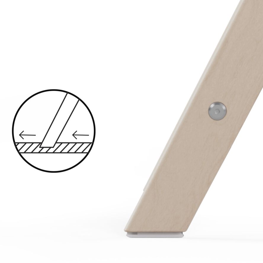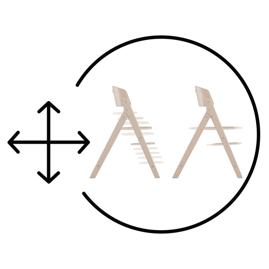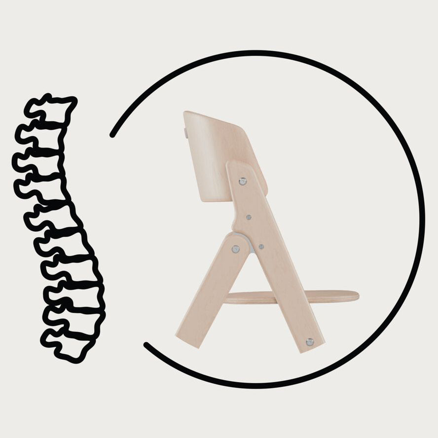 Click & Fold está pensada para acompañar el crecimiento con una posición sentada ergonómica. Las tablas, al colocarse en sus niveles superiores, se inclinan ligeramente, entregando un mejor soporte a la columna y promoviendo una postura natural desde recién nacido.