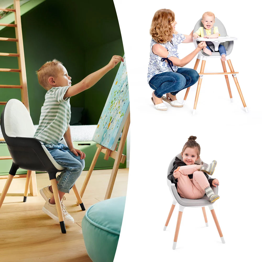 FINI es un práctica silla de comer 2 en 1. Primero servirá para que los bebés (a partir de los 6 meses) aprendan a comer alimentos sólidos, hasta los 15kg. Después, se transforma fácilmente en una silla que acompañará al niño mientras juega, pinta o descansa. FINI está destinada para niños de hasta 5 años (20 kg).