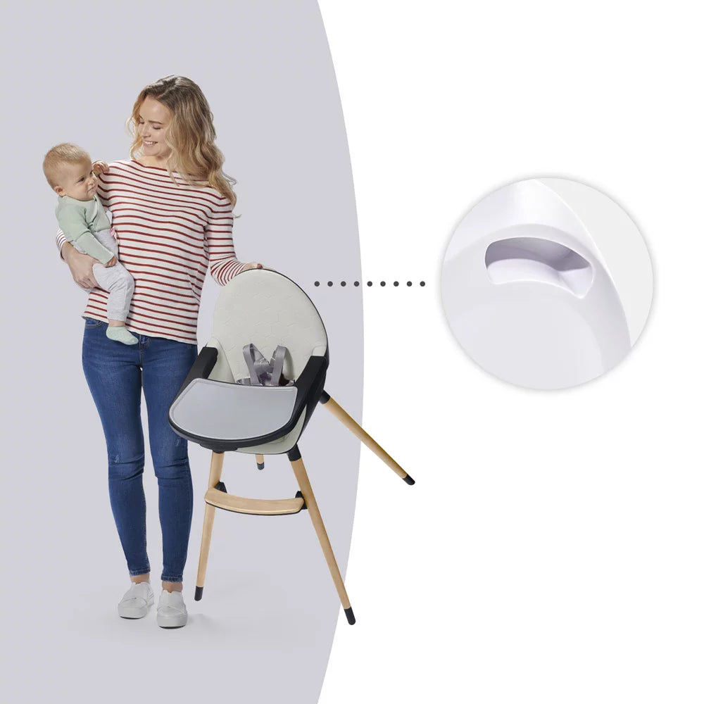 FINI tiene un asa cómoda que facilita el transporte. ¿Que el niño quiere comer en el salón? ¿O ha cambiado de opinión y prefiere comer en la cocina? No pasa nada, puedes llevar la silla de comer con una mano a donde quieras.