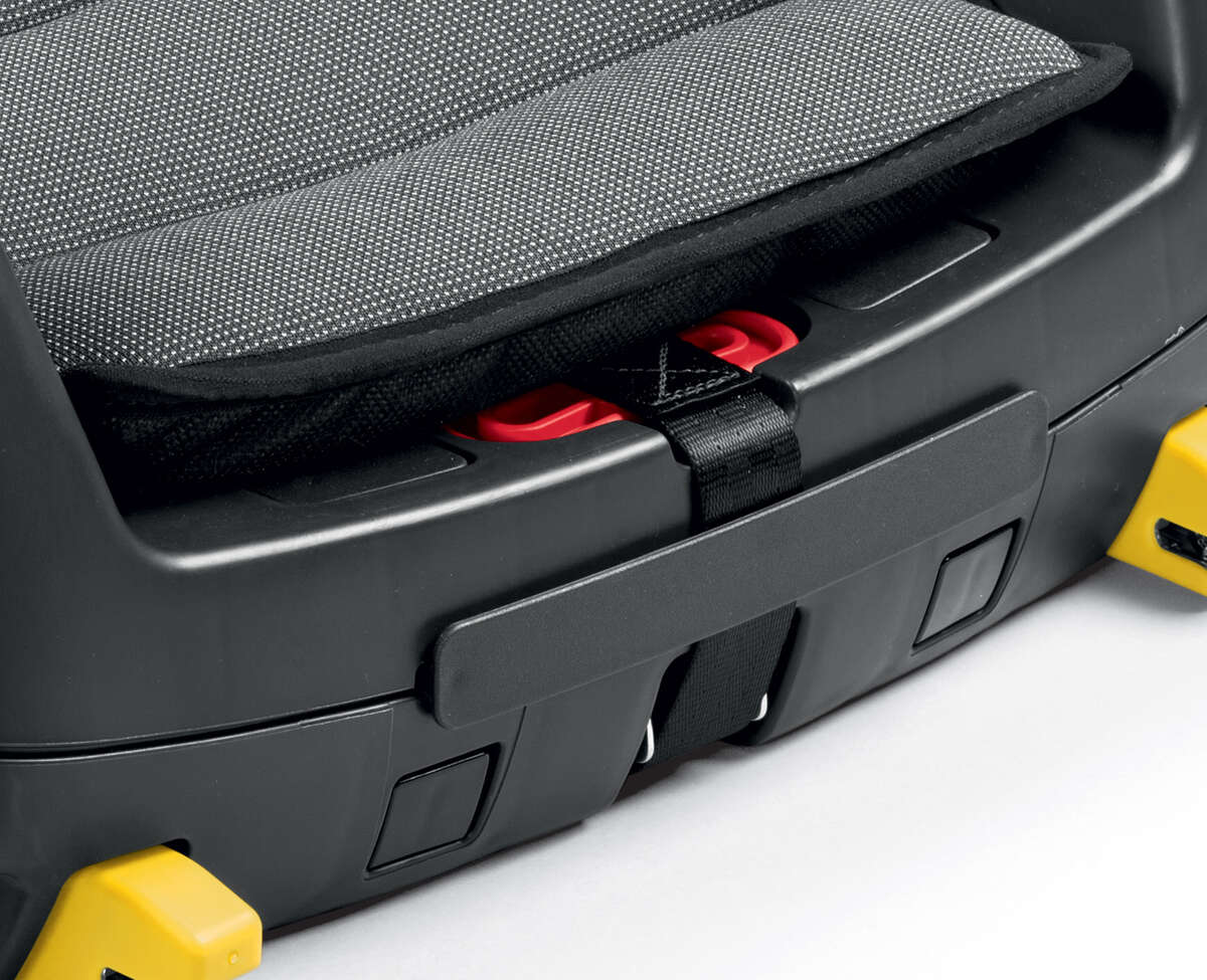 Posee conectores Isofix complementarios y guía para que el cinturón del auto se ajuste al hombro del niño/a.