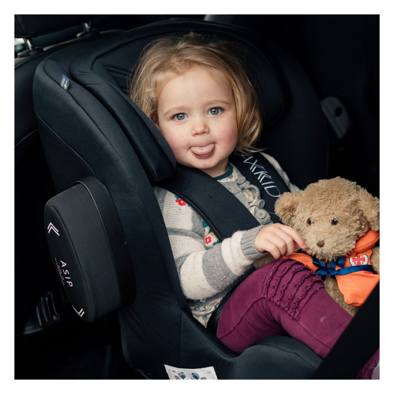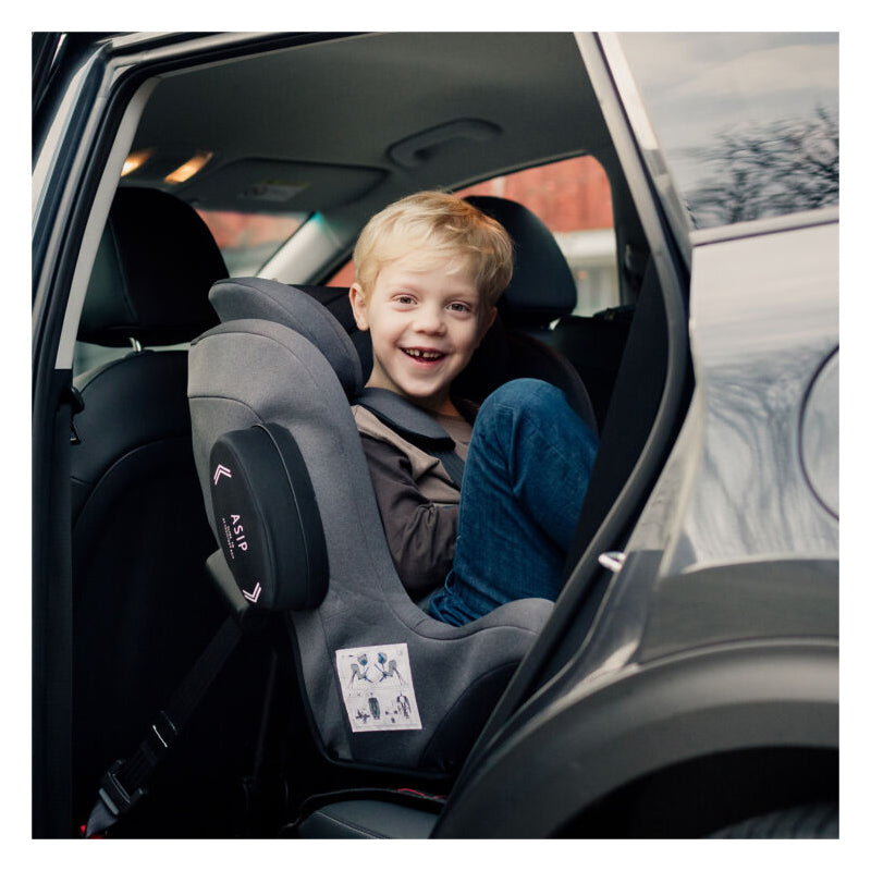 El 25% de todos los accidentes graves son colisiones directamente desde el costado o accidentes frontales con un ángulo lateral. La innovadora protección contra impactos laterales Axkid (ASIP) se desarrolla con el instituto de choque más prestigioso del mundo: ADAC en Alemania. Tras una colisión lateral, ASIP está diseñado para deformarse y absorber la energía del choque antes de que llegue a su hijo.