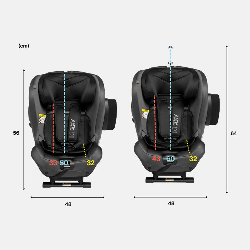 La silla de auto Axkid MiniKid se puede alejar del respaldo del auto, así se podrá aumentar el espacio para las piernas de los niños. Es muy cómoda para el niño y no requiere de demasiado espacio al interior del automóvil.